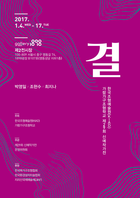 ¡à ¸íĪ KIAD-°¡¶÷°¡±¸Á¶ÇüÇб³ Á¦29ȸ ½ÅÀÎÀÛ°¡î÷ '°á' KIAD-karam art & furniture institute, 29th new designers exhibition ¡à ÁÖÁ¦ : °á ¡à ¸ñÇ¥ ¹× ±â´ëÈ¿°ú - ¿ì¸® DNA¿¡ ±â¹ÝÀ» µÐ Á¶ÇüöÇаú Á¶Çü¾ð¾î°¡ ³ì¾Æµç ±Û·Î¹ú °¨¼º°¡Ä¡°ü ¼±µµ - ÀÚ¿¬ÁÖÀÇ ÁöÇâ ÀÏ»óÀÇ ¿¹¼ú ±¸Çö - ¾²´Â Á¶°¢Ç°(functional sculpture)À¸·Î¼ÀÇ ½ºÆ©µð¿À ÆÛ´Ïó º»Áú °¡Ä¡ ¸ð»ö ¡à ÃâǰÀÛ°¡ : ¹Ú¿µÀÏ, Á¶Çö¼ö, ÃÖÁö³ª ¡à ±â°£ : 2017³â 1¿ù 4ÀÏ(¼ö) ~ 17ÀÏ(È) (ÀÛ°¡Àλç 1¿ù 4ÀÏ(¼ö) ¿ÀÈÄ 6½Ã) ¡à Àå¼Ò : °¶·¯¸® 1898(±¸.ÆòÈȶû) Á¦2Àü½ÃÀå ¡à ÁÖÃÖ : Çѱ¹Á¶Çü¿¹¼ú¿ø(KIAD)/ °¡¶÷°¡±¸Á¶ÇüÇб³ ¡à ÁÖ°ü : Á¦29ȸ ½ÅÀÎÀÛ°¡Àü ¿î¿µÀ§¿øÈ¸ ¡à ÈÄ¿ø : Çѱ¹¸ñ°¡±¸Á¶ÇüÇùȸ/ Çѱ¹È¯°æ¼³Ä¡¹Ì¼úÇùȸ/ Áö¸®»ê±¹Á¦¿¹¼úÁ¦(JIIAF) |